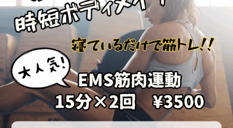 大好評のEMS筋肉運動😍 運動が苦手な人も、ジム通いしてる人にも人気💕 「なかなか鍛えられないインナーマッスルが鍛えられるのを実感‼️」 坐骨神経痛、ギックリ腰の方、整体、ヨガ、針など色々と治療していた方から「コレが1番 … 続きを読む 【大好評】EMS筋肉運動クーポン