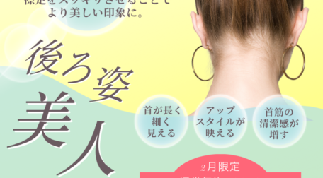 普段自分では見えないため放置されがちな「うなじ」の毛。 襟足をスッキリさせることでより美しい印象に。 ◆首が長く細く見える ◆アップスタイルが映える ◆首筋の清潔感が増す 襟足脱毛で後ろ姿美人になりませんか? ご予約お待 … 続きを読む えり足脱毛クーポン