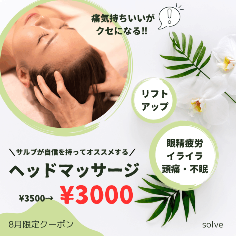 サルブの人気メニュー💕 痛気持ちいいがクセになるヘッドマッサージをぜひお試しください😍 お顔もリフトアップ⤴️してスッキリしますよ🎶
